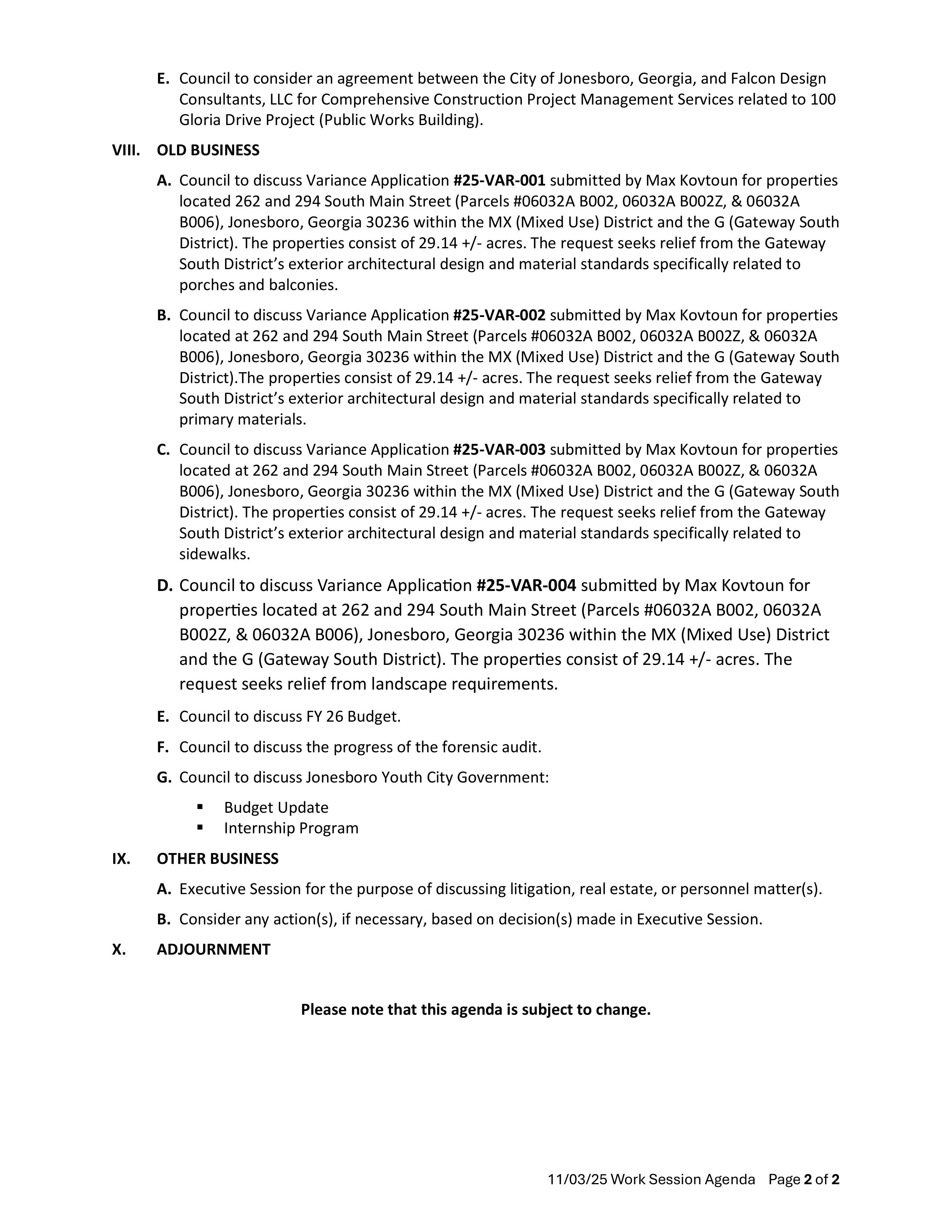 CITY COUNCIL SPECIAL CALLED MEETING 10-22-25 AGENDA